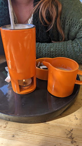 She timidly inquired to the owner (soft looking guy in his 50s) about the drink and was met by rudeness by him and the young girl working behind the counter. The girl rolled her eyes and said "I called out for a hot chocolate with almond milk several times." But we had been issued with a number for the table, and the place was loud, and we assumed that it was table service. Why else would they give us a number for the table??