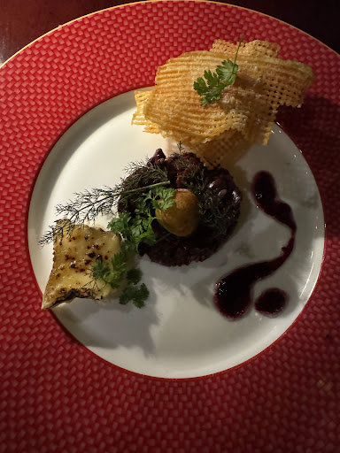 The food looked impressive but fell short in flavour. The beef tartare was served with fries and what seemed like ketchup. While tartare frites is a known pairing, in this setting the fries made the dish feel more casual than refined, and the ketchup style sauce overpowered the delicate flavour of the beef. The beef fillet that followed was beautifully cooked but noticeably under-seasoned. It genuinely tasted as though no salt had been used. That may be a stylistic decision, but it stood out to us, especially as other restaurants we have visited in Sydney have not had the same issue.