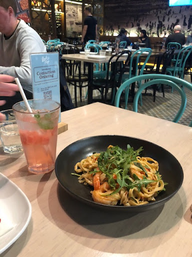 I thoroughly enjoyed the food and drinks. In fact, the highlight for me was actually the mocktails. Although it is a humbly lengthed section on the drinks menu - the two options we got (Ms. Rose and Lychee Cooler) were both delightfully rich and balanced in flavours, whilst still being light and a great palette cleanser. I would absolutely order either one of these again. The Bondi Meat Supreme was thin, crispy and hot when it arrived. I particularly enjoyed the sauce on the pizza. The Chili Prawn Linguini was comparatively my least favourite compared to the rest of the meal - but at least it did not fall into the trap of the only palpable flavour being that of being chili and making chili the sole flavour characteristic that often occurs with other chili pastas. The prawns were cooked well and I enjoyed the tanginess that was also present. It was better than some prawn chili linguinis I have had in the past, but I personally prefer slightly richer dishes so I myself would be less likely to order it again. This is just a personal preference though - my dining companion that night who enjoys lighter flavours really liked the dish. Time for food and drinks to arrive also felt reasonable and everything arrived fresh and warm (or cold in the instance of drinks).