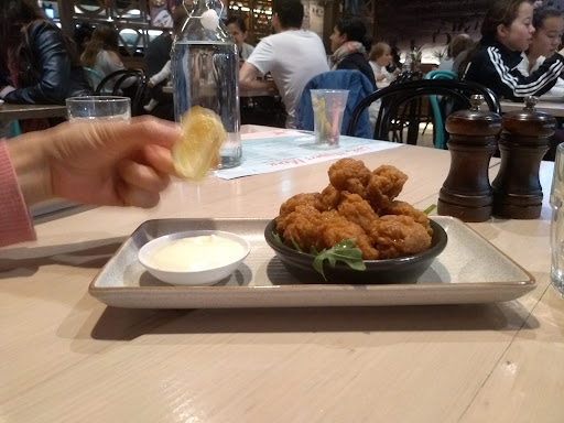 Had the salt and pepper calamari and chicken pesto rigatoni. Took 20 minutes for the calamari to arrive and there were only 8 pieces! Long wait for such a small starter! Calamari was very, very, salty but at least not greasy or tough.