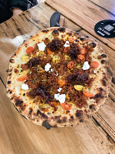 We dined in a group and shared a good range of foods such as the LaGiGi hand stretched pizza dough with whipped goats cheese, chorizo crumble, chilli flakes, sticky red onion jam, cherry tomato & pickled rosemary. The pizza itself was a huge size. We accompanied this with some greens; their house green salad / lettuce, pickled red onion, radishes, pickled green herbs, apple cider, house dressing.