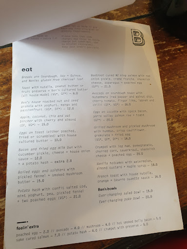 UNDER NEW MANAGEMENT so many previous reviews (including my 5* one of several years ago) no longer relevant. The kitchen is basically the same so if you just want excellent food then please visit. However the well known weekend specials sometimes get repeated the following week, and on some weekends (the last two weekends for example) there's no special on offer at all. It's the front of house that has undergone major changes and which has resulted in this lower grade review. After 7yrs of Ash and her family who were genuinely likeable there's now a lot of forced bonhomie. It is now noticeable that there is often friction in the air which seems to be sapping staff morale and most of the good girls have departed. What seems to be the result of lack of hiring experience has also resulted in Casuals that only last a few shifts. Worst of all, the very good barista who has been a mainstay of the business for most of its existence has departed . Sada will hopefully be still holding the fort Sunday through Thursday but the coffee on the busiest day, Saturday, is a far cry from the usual standard. Apart from a six week period a couple of years ago Brothers Ben have previously served great coffee poured by people who knew what they were doing and had years of experience. That is no longer the case every day. Currently there are also hassles regarding the outdoor seating as new management it seems didn't do their homework. A similar lack of knowledge or unwillingness to enforce rules results in occasional dogs in the cafe, dogs on chairs and/or eating in outdoor seating areas, and smoking in those same areas (their excuse is that they can't see but Council rules say that all outdoor seating must be able to be seen from inside the cafe). The remote POS that allowed customers to pay outside has been disconnected resulting in solo dog minders being forced to enter the cafe to settle their bill. In addition, on days when the new owners can't be bothered turning up there is no longer a Duty Manager to field complaints, solicit feedback, etc, which is showing contempt for the customers in my view. Add to that that there seem to be a lot less cakes on offer, and the fridge of bottled drinks has disappeared. The smoothies are still worth ordering. So, while I still love the food, I'm marking the place down due to substandard management, erratic coffee service, and...