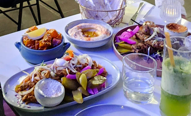The restaurant has a lovely modern floral, marble and gold decor accompanied by ambient Lebanese background music. The restaurant owner is very pleasant, kind, and happily engages in conversation while serving.