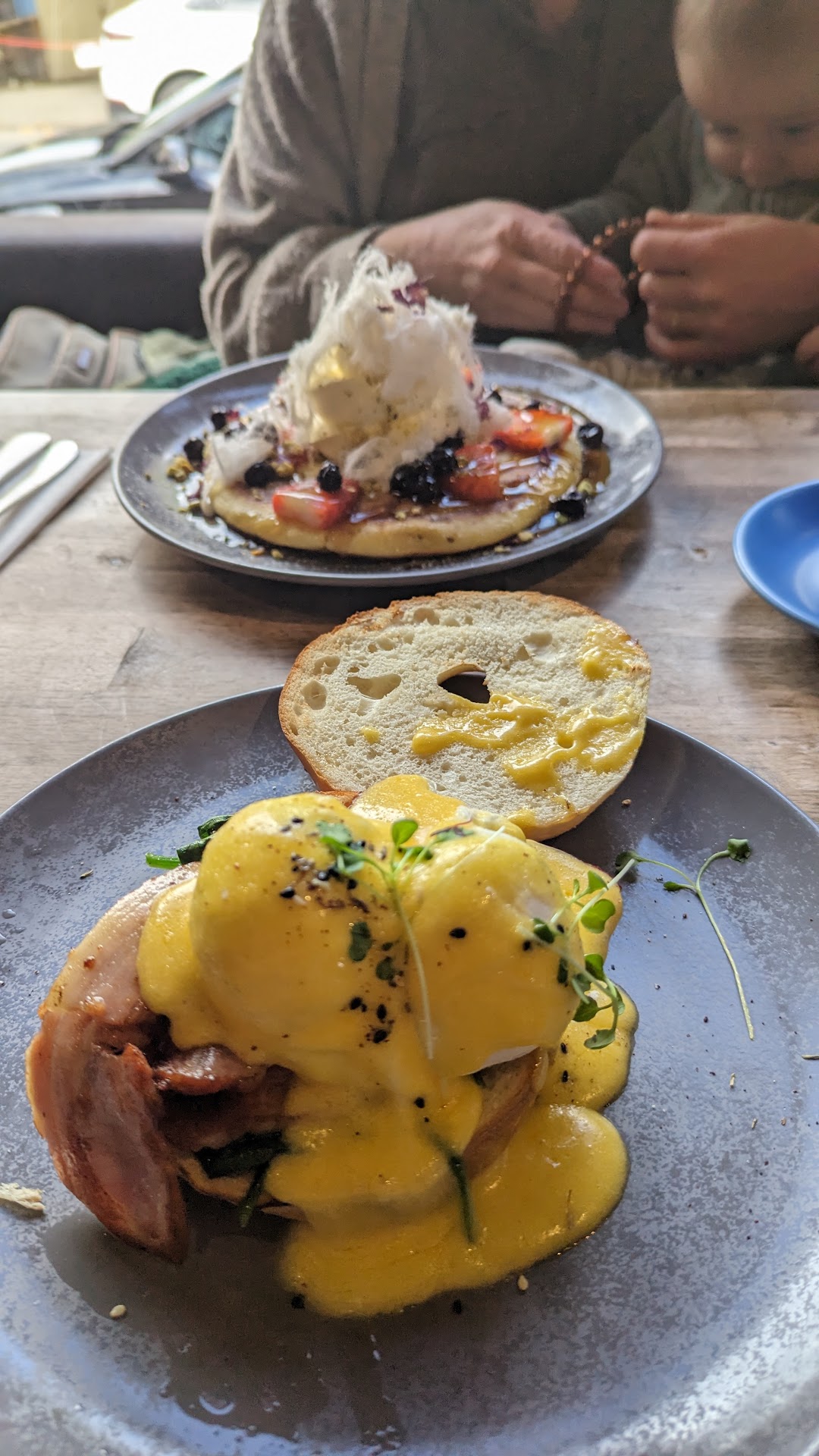 Our fussy-eating 3 year old rarely eats anything from cafes and we generally have to get something simple from a bakery when we eat out. One of the waitresses kindly directed us to a bakery, and my partner went out to get something for our daughter. When we brought it in and our daughter started eating, the rather grumpy owner/manager came over to us and, to our astonishment, said our daughter couldn't eat anything from off-premises. We had, by that stage, already ordered 2 large breakfasts for my partner and I, that had just been served. We said that our daughter was a very fussy eater and she wouldn't eat anything on the menu. The owner said he couldn't allow it "because of covid". He said "we don't know where the food came from". We said that one of his girls had directed us to the nearby bakery. He said that didn't mean our 3 year old could eat it on premises. My partner was forced to take my daughter out on to the cold wintry street and feed our daughter, while our breakfasts sat cooling on the table. It was really quite extraordinary.