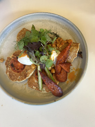 My partner had the big breakfast which looked ok but $28.90 for a big breakfast? Just a bit exorbitant considering the location. Never paid more than $20 for an awesome spread of brekkie goods (including places closer to the city). I had the breakfast burrito.. thought I'd give it a go considering I am a fan of burritos.. Well it was quinoa with mayo, little mustard pickle and a few bits of the other ingredients in a tortilla. Pointless side salad of rocket and cherry tomatoes drizzled in balsamic vinegar and the poached egg on top. Avocado on the side. Ended up stuffing the burrito with the mixed leaves under the burrito and the avocado so it was more substantial than just a wrap of carb. Really disappointing and a strange idea of what a breakfast burrito should be. Thank goodness my partner gave me his baked beans. Service was a bit on the slow side once order was taken. The only saving grace was the coffee was decent other than that found it expensive and disappointing. Eaten at better places in the local area for less. The 2 stars are for the coffee and caramel thickshake my...