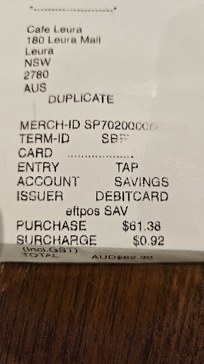 Overall, I would not recommend Cafe Leura to anyone looking for a comfortable, enjoyable dining experience. The staff are hit-or-miss, the lack of accessibility and amenities is frustrating, and the prices are simply too high for what you get. If you're looking for a cafe that is welcoming, accessible, and reasonably priced, I suggest looking elsewhere. There are plenty of other options in the area that offer a better...