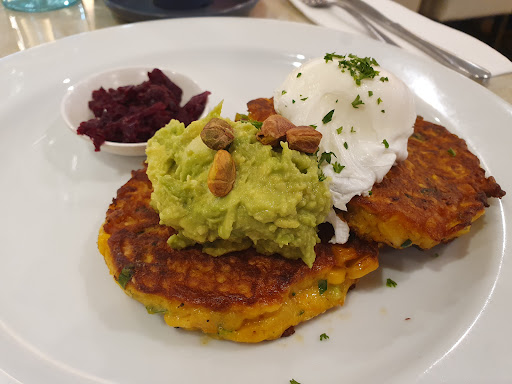 Read morePopular and prominent corner cafe located in East Point centre in Edgecliff opposite the entrance to Coles. The corn fritters I ordered for Sunday morning breakfast was a light dish, and wouldn't be suitable for anyone looking for decent sized serve. The fritters were quite tasty, and were basically two pan fried corn patties topped with mashed avocado and a poached egg. There was also a side serve of beetroot relish. The dish could have benefited from a toasted bread slice, but otherwise it was well prepared. Staff were friendly, wait time...
