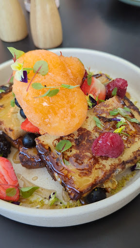 The service was great and the food is always so well presented. We actually received two of the pick me up juices instead of one OJ but it was quite nice so I just drank it anyway. My Dad loved the nourish Bowl, the dressing wasn't to his liking but he said he didn't need it, everything else was so good. My mum had never had Shakshuka before and she really liked it, especially with the toast to dip in to the sauce. I've had the french toast a few times before and always loved it, unfortunately this time it was a little disappointing, the GF toast tasted stale, it was dry and crumbly and not very palatable. There wasn't as much fruit on the dish as usual and instead of the ice cream that it was meant to come with it came with some kind of maybe sorbet, but it was a strange texture and I didn't eat it. It's such a shame as I've always loved this dish in the past. The coffees were great as always!