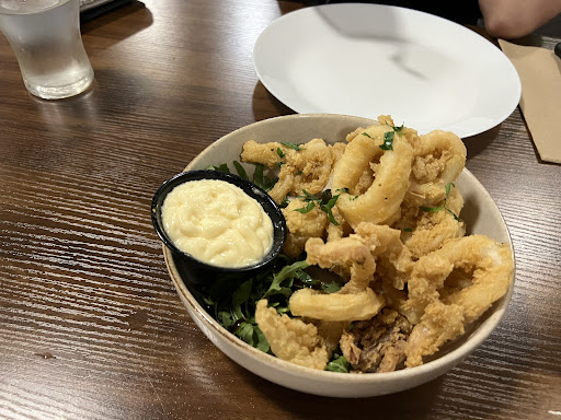 Been away for some years and craved for calamari. Was at Bondi over the weekend and I thot: canāt go wrong. Boy was I wrong. The chips were thin and overly browned and worst of all was the panko covered calamari that tasted more like fish paste. So am so VERY happy to taste the good ol calamari Iāve been dreaming of here at Bistro on the Lawn. Beautifully fried to a crisp yet not oily to the taste, the aioli sauce was spot on, not tartare sauce thank you. The salad of rocket with balsamic syrup went well to cut the richness of the entree.