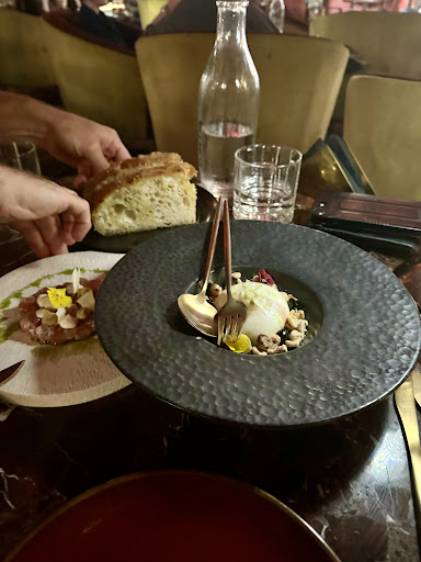Now, onto the cocktails. We were a group of five, and tried four different cocktails, expecting great things from their signature menu. Sadly, we were all disappointed. The cocktails, priced between $29-$36, were all out of balance—too sour, too sweet, too strong. The art of mixology seemed absent, and the presentation left much to be desired. They were served in heavy clay cups, more fitting for a chai latte than a signature cocktail. Thankfully, we arrived just before happy hour ended, so we didn’t pay full price, which was a small relief.