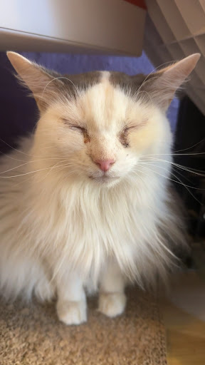The eldest cat has funky white eyelids which could easily have been caused by age but there was no reassurance from the staff that this was being treated.