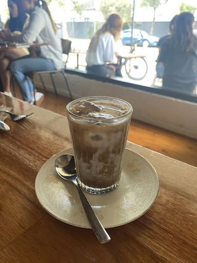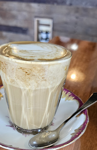 Read moreWhat comes to mind when I say cake? Moist..yum...crumb, maybe? What about peaches and cream cake? Yeah, that's as obvious as a pig in a bird cage. That's where the dissonance rises here. Before choosing the peaches and cream cake, I ask, "What kind of icing?" the orange poppyseed cake has..."orange" is the curt reply...well, yeah. (It's a cake place, so I was expecting "buttercream" or any of the myriad options). Undeterred, I chose the creamy look of the peaches and cream, being as it is peach season. Assuming white peaches must be at play, as the whole construction is white. Well, I was as deflated as a new year's balloon in march. The sponge spent way too long in the oven or missed a stage in prep, coz it was as dry as Kalgoorlie. The icing? Classic sugar icing; no buttercream, almond cream, silken tofu cream, nothing. Neither atop nor centre. And the peach? No peach....oh wait, you see that little kiss garnish in light orange? Yeah, that's artificially flavoured peach. It was a disaster ( yeah, I ate it...clearly addicted). The coffee ordered strong was probably a double shot. But they were either transfer shots (crema gets lost) or the roast is as mild as I was enthusiastic when I entered. I ate quickly, but the team was more fixated on stock control than seeing what I thought of the choices I made. I'm sure there are pluses here. The rating clearly was earned. But not...