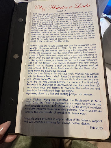 Read moreMy wife and I celebrated her birthday at Chez Maurice Et Linda and it was an unforgettable experience. We were blown away by the quality of the food, especially the wellington beef and lamb which were cooked to perfection. The veal kidney and scallops were also outstanding, and we were impressed with the attention to detail in every dish.