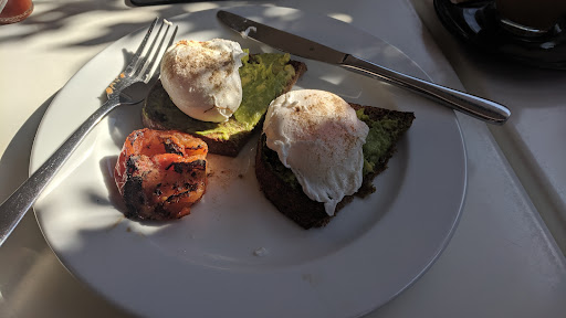 I was a litte shocked today when I ordered something smaller: 2 slices of toast, with smashed avocado and 2 poached eggs with a strong latté. The bill came to a whopping $17! Nevermind, I'm sure I'll get a decently sized meal for the price, it is avocado, after all. Wrong.