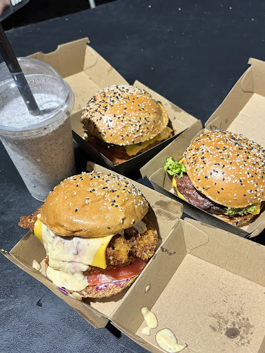 the veggie burger had a think fried vegetarian patty (maybe mac and cheese or just a veggie patty idk) and it was my least favourite burger out of the 3, but still decent.