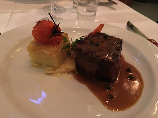 The entree of Steak Tartare came deconstructed with the elements finely positioned around the diced beef cubes. The waiter mixed them together along with the egg yolk to become a nicely balanced dish of richness and tanginess to match. It was perfect and the envy amongst other on the table. The three cheese souffle was light and rich and was the recommended dish by the waiter and the Dome of smoked salmon was perfectly accompanied by the crab and celeriac remoulade served with avocado dressing and brioche crouton.