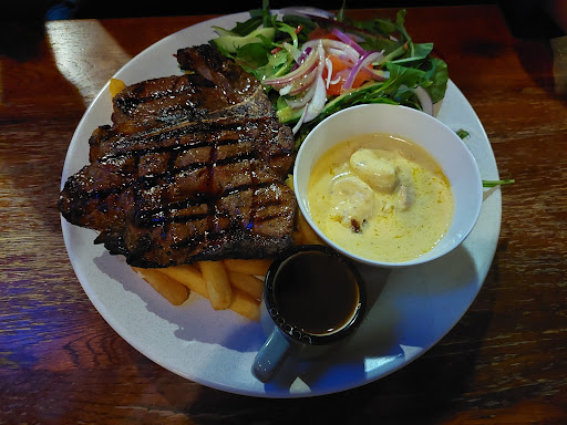1st time here for dinner with friends on 28.8.22 Great customer service, atmosphere & food We ordered: Bruschetta (shared) Nachos (friend) Roast beef/pork (partner) Roast beef (friend) Scotch fillet steak (me) All the above was nice & we enjoyed everything, except for the dessert - which we fortunately shared, as we were full from dinner Belgium waffles w/ice cream - dry chewy & not fresh Tim Tam sundae - had little shavings of tim tam that u couldn't taste & the chocolate topping & ice cream weren't nice either Both desserts tasted like cheap low quality home brand products My partner & I returned for Father's Day dinner & ordered the T bone special & Scotch fillet steak again. The T bone was cooked perfectly & tender but this time the Scotch fillet was dry & chewy - total opposite to my 1st time Our overall experiences on both visits was still good - hence the 4 stars only