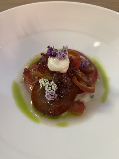 The dinner started with a refreshing tomato dish that somehow still managed to deliver depth of flavor despite being so light. Topped with lime and pomegranate caviar, it was visually stunning! The natural umami from the tomato made this dish one of my personal favorites.