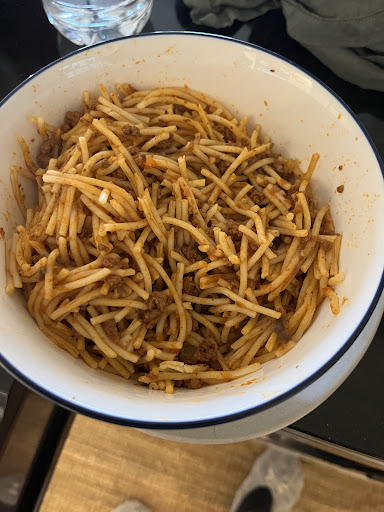 Then my main arrived. Spaghetti with a Bolognese sauce. The spaghetti was cooked to perfection. The sauce (way, way, too much sauce) was watery, bland, and clearly not a mix of pork and veal.