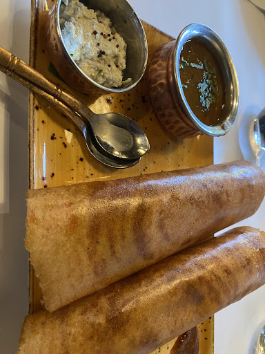 Read moreThe biggest put off at a restaurant can be to be served food with DIRTY cutlery on the side which speaks a lot about the mediocre hygiene standards of the restaurant and probably the kitchen. For reference I have attached a photo of the dosai that I ordered which was served with dirty spoons. Also, to note is the next to inexistent customer service at the restaurant which is so poor and irresponsive. Everyone from their staff is just sitting inside the kitchen ignorant of the diners and no ones around to help with additional orders and you might find yourself walking up to their desk every time you need assistance. Also, a highly likely chance is for them to get your order wrong the first time and then you having to wait for the correct order to arrive (we were served a Mysore Masala dosa instead of a Masala dosa that we ordered). And ironically it seemed like a regular practice as the same exact mix up with the order happened with another couple of people sitting on an adjacent table to us.