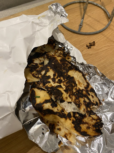 Ordered takeaway and headed home to find out the naan was completely burnt and inedible.