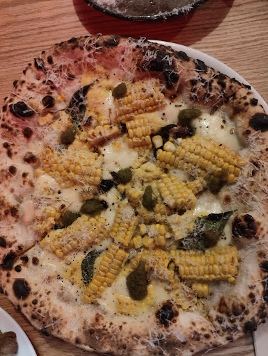 My partner had the cream of corn pizza. I’m not a huge fan of creamed corn, having been subjected to it a lot (from my grandmother, who did not know how to cook) growing up in the American south, but I tried to slice of his and it was delicious!