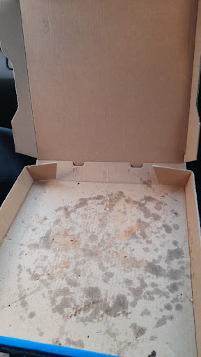 To my absolute shock and disgust, I got home and opened the pizza boxes to discover that the pizza I been forced to wait for was burned to a crisp, with actual jet black charcoal all over it. It was inedible.. I had to tell my kids they had to wait and return to the store to be met by the same two goons standing at the counter.
