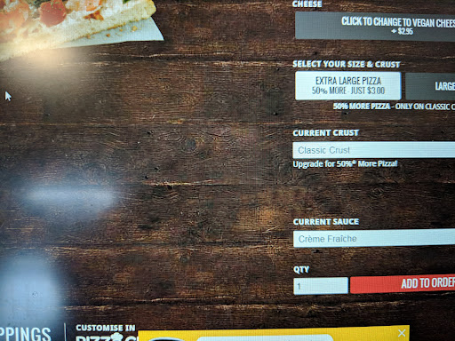 The fourth time we ordered the âextra largeâ option for an additional $3, but received a pizza that only filled a quarter of the box. This was disappointing so I kept calling until I got an answer. When trying to explain the issue, the person on the other end replied âI donât understand whatâs wrong!â So we went over it again. Still no understanding.