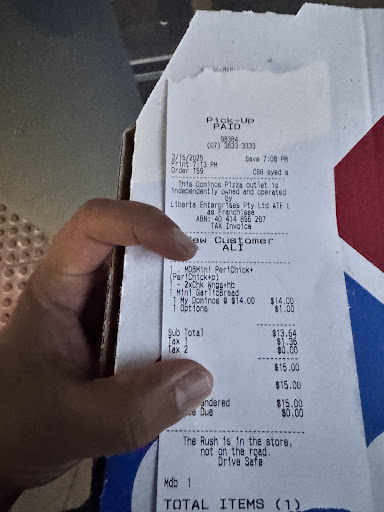 Read moreThis review is for the Domino’s management abd owner. Its a disgrace for your staff to know basic hygiene. They are using the same pizza cutter to cut chicken pizza, vegetairan pizza and pork pizza. Teach your staff member if they are using the wrong practices, tell them to change. The same pizza cutter is used whole without washing. I have added the picture of the this store manager who not following any food safety and cross contamination law. Its a shame, start investigating and get into this matter soon if its too late. Train your staff, to practice basic food hygiene habits. I have to report this to food authorities and work health saftey as well if this the situation is repeated again. Please take this review seriously