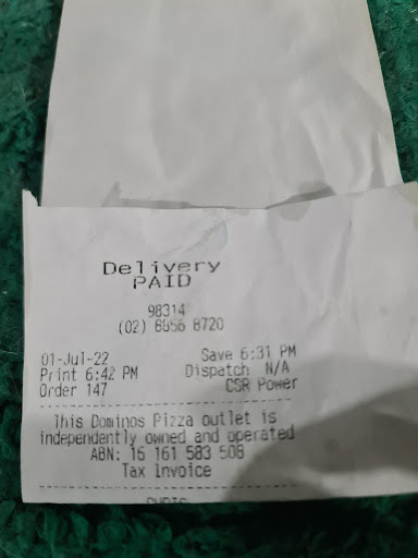 Read moreMy husband arrived in store to be to told that our pizzas would be ready in a minute/just coming out. He stood there for the next 20 minutes waiting and had to approach staff to say he was told it would be ready ages ago, the staff member checked and sure enough our order was sitting on the shelf, sweating in the box, and almost completely cold. When this was pointed out to the staff member, he simply couldn't care less. Now we're sitting here starving waiting for our pizza to heat up in the oven at home after paying $41 to not have to cook. We stopped using Dominos and started using a competitor a while ago because of the absolutely consistently shocking customer service at ST Marys store. We decided to give them another go recently, last order was delivery and was good. Previously Ive also stood in store while staff members stood around doing nothing while one person only served at the counter, slowly...while my pizza sat for 15 minutes on the shelf getting cold. Another time,one pizza wasn't made at all/completely missed and forgotten, and the others were out and ready, but I was made to wait and by the time the missing pizza was remade, the other ones were almost completely cold, and ofcourse, the few minutes drive home, they were completely cold.Really...