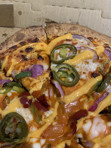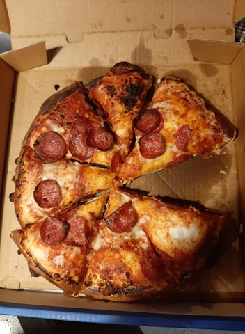 The photo is indicative of the quality of pizzas from this store. Cold discs of burnt dough. I have ordered many times, and every time have been disappointed. The service is terrible too, which I mostly blame on underpaying staff. There is no quality control, as the pizza checker is never used. Unless I pay extra for 20 min delivery, it always arrives late and cold.