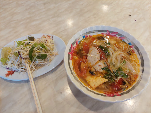 I ordered Bun Mam (combination noodle soup), and the pieces of fish were raw. I had to send it back (a first for me)...to be fair the older gentleman serving was quite apologetic when he brought out a replacement. If it was just that, I wouldn't complain but we had to ask for bowls of fish sauce and the drinks we ordered only appeared after prompting the servers 10 mins after our food had arrived. I feel for the boys that were serving us as the older owner lady was so mean and snarky. She also thought she deceived us by giving us two of the exact same drinks despite one being asked for with less sugar.