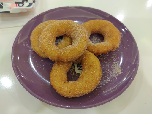 There I was on a Thursday afternoon, double cheeked up, hella glutes, just finished my intense leg day workout, searching desperately for something to satisfy the empty feeling in my stomach that had been lingering for the entire day. Just as I was about to lose all hope and give up on my near impossible quest to find the perfect snack, I froze. The powerful yet subtle aroma of freshly made doughnuts creeped up my nostrils, instantly grabbing my attention. Goosebumps appeared all over. It was a smell that I'd never smelt before. I immediately dashed across to the stand, warmly welcomed by a handsome young man with a smile that glowed like the sun through his mask. His crispy voice sent shivers down my spine as he took my order politely. And in a blink of an eye, he served me the freshly made cinnamon doughnuts, steam seeping through the neatly packaged container. I could not hold back anymore. I sat down by the tables aligned with immaculate symmetry, and finally took my first bite. BOOM. I was hit by a rush of sweetness, crispiness, and fluffiness, along with the puncturing aroma of the finest quality cinnamon all working together in perfect harmony. It only got better and better the more bites I took, truly a work of art. Overall, an unfathomable moment that can only be understood with first-hand experience. So please, for the love of god go try it for yourself, and be prepared to have your mind blown into a whole new world. ChefD....