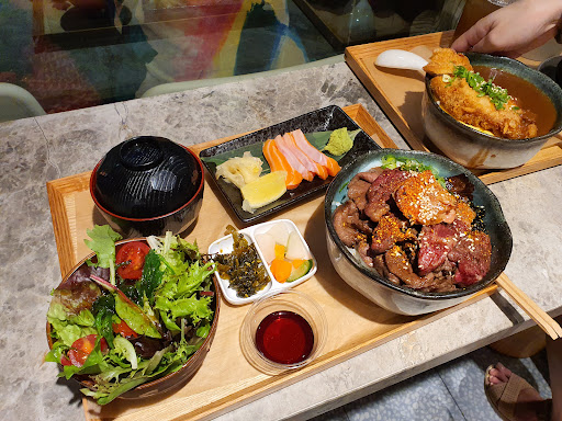 Their menu is extensive, we went for the Katsu Chicken Don Set and the Wagyu Beef Don Set that supposedly had an Australian marbling score of 8-9. Drink choices had a bit of everything but not any sugar free options on the soft drinks which was a disappointment. If you're diabetic or trying to control your sugar intake you're out of luck unless you go straight for water.