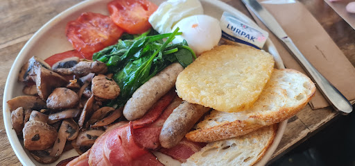 Then it took about 45mins for meals to come out, which was fine as it was quite busy. The EBT was weak.... and the food came, I asked for eggs to be well done (scrambled) they were passable, but not really well done and had egg shells in 2 out of the 4 big brekkys, and I asked the waitress to please put my sausages back on the grill and she did not seem impressed, they came back they were barely grilled.