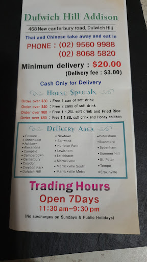 DULWICH Hill ADDISON Thai and Chinese Takeaway, okay so that combination probably should have clued me into to the mediocrity of the food, but sometimes the weirdest of places have the best food. SOMETIMES, This is not one of those times. So whenever I try a Chinese takeaway the first thing I get is BBQ Pork Fried Rice, You can usually judge a Chinese takeaway on that dish alone. The verdict is not good..... First of all way to salty literally all I could taste was the huge amount of salt that was used to make this dish, second it had none of the usual ingredients you tend to find in a fried rice dish like scallons/spring onion, scrambled egg etc there was how ever plenty of carrot and corn 🙄 and peas and the rice itself was mushy. As for the BBQ PORK it tasted more like roast pork and was very dry and salty and the price was an outrageous $11.00. Which would be fine if it was actually edible but after two forks full it went in the bin. Considering it is literally a bit of a hole in the wall takeaway $11.00 is pretty pricey. Very disappointing especially considering I was drawn in by the smell as I was passing by. Not sure what smelled so damn good but it definitely wasn't the BBQ pork fried rice.