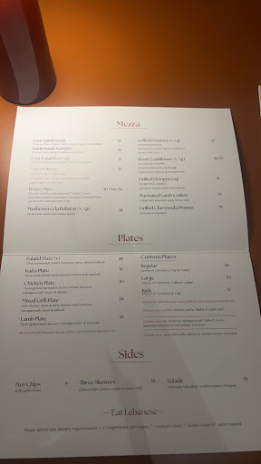 Next level superb! Seriously! 7 out of 5 all round. From the minute you step through the door, front of house makes you feel most welcome, without a booking. Championing Lebanese cuisine and wine. The food is sensationally delicious. Very rarely do you get to taste something more delicious than you can cook at home. Even simple falafels were a treat. Tabouleh also exquisite.The dips were all mind blowingly great. The octopus, soooo tender. The kaftas, the lamb......so melt in the mouth moist. Toum.....where have you been hiding.....sooooo good. The kafta foldups a definite must try. The sauce in them is simply outstanding. The supporting rice was also undeniably tasty. The waiter was exceptionally friendly and made the experience even better. This is a meal I will remember for a long time. The proteins were exceptional. The dips and accompaniments even better. The food came out very quickly. It's a travesty that more restaurants and cafes can't follow this very simple protocol. Keep it simple. But do the simple superbly. Value every person that walks through the door. Make them feel important to you. Prices were consistent with the absolute quality across all aspects. Oh, the Lebanese rose was also...