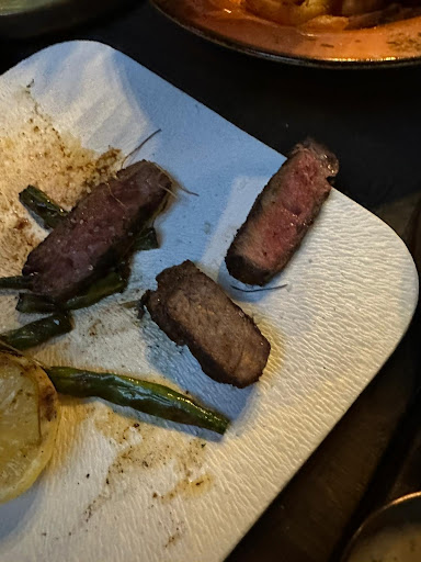 The garlic cubed beef skewers were served on a hotplate with pickled vegetables and chimmichurri sauce. The beef was cold in the centre, was somewhat tough, dry, and the flavour combination of the beef cubes and chimmichurri was not right. I've had chimmichurri countless times, and this was a watery, flavourless mess. I also asked the waitress before ordering the skewers what meat would be used and I was assured that it was the meat they use for their upscale steaks, that it would be wagyu rump, it certainly wasnt. You'd think that since it was on a hot plate the food would be "hot."
