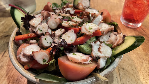 The first dish I sampled was an Ensalade Mixta topped with thinly sliced octopus which was an addition to the salad as referenced, a slight saltiness of freshly mixed leaves, olive oil combined with the ocean fresh octopus was simply sublime and set the scene for the evening.