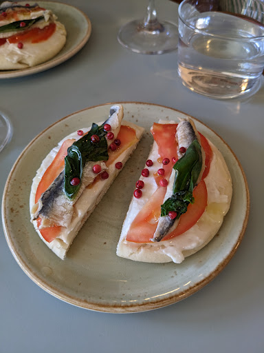 Stopped by for a light dinner and drinks. We were able to make a booking when leaving work. Staff was very friendly and professional. The wine menu changes monthly, and we were interested in the wine flight so we got to try a few different wines. The food menu had few choices, and we got the anchovy pitas to start, and bread to go with the pate and rillette. The dishes were quite big for the price, and tasty as well, so very good value. The rillette was definitely a highlight, and the pate was also very flavourful. There weren't, however, many veg/fresh options, even though all cheese and meat dishes come with a little bit of pickled veg. Will look to revisit when the wine menu changes, and perhaps if the food menu changes...