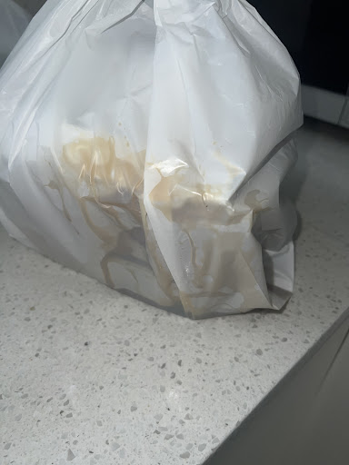 Upon arrival the packaging was broken and sauce leaked everywhere inside the bag. This may have been the cause of the delivery driver however he did apologise when handing over the food and claimed he âpicked it up like thatâ.