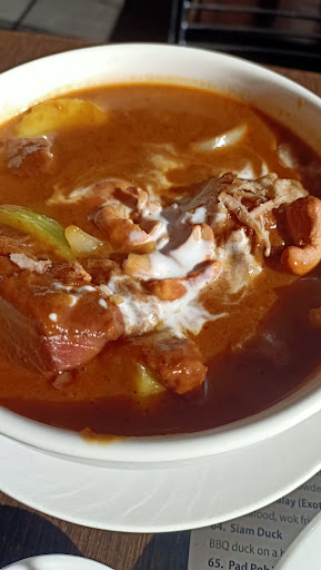 Very fresh Thai with clear flavours. Limited seating inside, so prob a good idea to book Thurs-Sat. The money bags were beautiful, despite not being as peanutty as some versions. You could see every individual ingredient clearly upon opening them, which made a nice change from the usual muddied look. The beef mussaman curry was, I'm told very tasty with tender beef, however it wasn't as thick as it could've been. The curry king prawns with egg, a chef special was a nice deviation from the usual Thai fare. However, I would add that the King prawns weren't quite King. I think they still had some growing up to do! They have a lunchtime special from $9 and they accept eftpos even for lunchtime specials, provided you spend more than $15.. That makes a nice change from the cash only lunchtime places that abound. It's spotlessly clean, and parking is quite easy if you go to the rear, where Aldi is situated. A good lil...