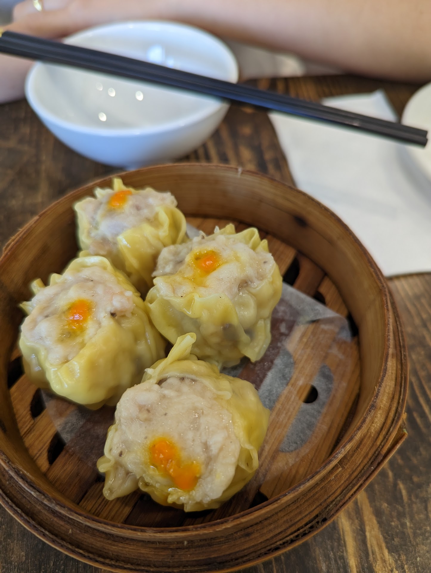 The prawn dumplings are hot, nice, fresh, in a generous size that you can bite into prawn pieces. Favourite dumpling is the chives and prawn.