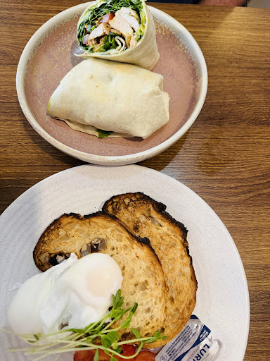 Finn &Co is a nice cafe that does their food very well! When you go in, you can smell butter and sugar - that means freshly baked goods in house!!! We ordered chicken wrap and eggs your way on toast. Both were so delicious- the poached eggs were the best. Poached eggs from most other cafes tastes a bit sour from vinegar that goes in the water. And I was told that you put cooked eggs in the cold fresh water after poached, so it doesn’t keep cooking while other food is getting ready and remove the vinegary taste. Most cafes don’t do it because it’s extra effort, and the chef at Finn&Co put extra effort to make the plate perfect. Also the toast was perfect cooked, chicken wrap had balanced flavour. Then we ordered a carrot cupcake - it took 10 min and we were wondering why it takes time, because you expect a cold cupcake directly from the fridge in other cafes. But my cupcake in Finn&Co was served warm!!! What a great way to enjoy this delicious treat! I don’t know how they did it, but the cupcake was hot but frosting didn’t melt at all. It was definitely the best. The service was very good. Staff was attentive, efficient and friendly. Food came out hot like they cooked 2 seconds ago, and the timing of drink and food was good. Only one thing was, it was a hot summer day and inside of cafe was stuffy with people ( it was sunday lunch and was FULL), kitchen and food. There was an air conditioner but wasn’t on at all. Guess just fans would’ve done a good job. Other than that, we enjoyed our meal. Will definitely go back for fresh...