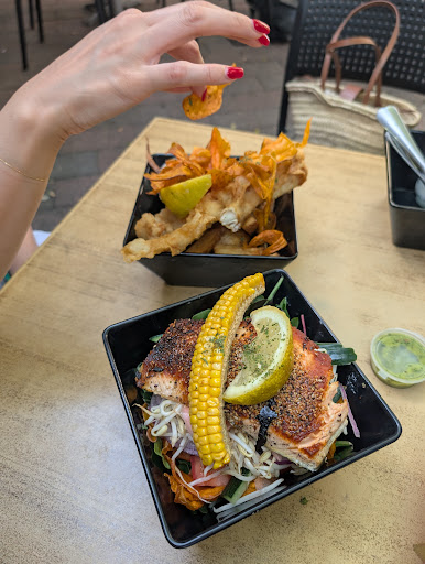 Read moreSomewhat hidden yet relatively easy to find in one of the back streets of Manly’s corso, this place is ‘one of’ or more appropriately, the ‘top fish & chips restaurants in Sydney’. Fishmongers isn’t your ordinary fish & chips place around the corner, it has a generous courtyard-like seating outside away from noise and traffic. We ordered the 1/2 family box, very easily, serves 2. It starts with two oysters as hors d’ouvre followed by the mouth-watering and fabulously looking box which came with our grilled barramundi and flathead (small additional cost). It came with prawns and calamaris which were also cooked to perfection and the endless serving of ‘truly’ hand-cut chips and wedges! The box came with the traditional sauces and plenty of lemons and sweet potato chips. Fishmongers isn’t cheap but like anything of luxury, quality has its price. We were extremely happy to pay this price of an out of this world fish & chips experience that has truly left all competitors behind. We will definitely...