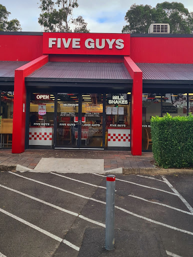 Read moreI've got to get out more. There are just so many amazing places out there to eat and five guys , as I discovered today is one of them. Located just outside the Penrith panthers league club amongst the other food outlets out front of the club. This first thing I noticed when we parked and got out of the car was the amazing smell of food coming from the restaurant. Upon entering, you are greeted by a large open-plan restaurant with indoor seating , from booths, tables and stools. There is no table service. You order at the counter and your ticket number will be called when your food is ready. This is an American chained restaurant and I was particularly excited to try an American hotdog. When you order, Wether it be a dog or a burger , you have to know that at that point , your burger is just a paddy in a bun and your hotdog is just a dog in a bun. You have to add on and customise your order. So for example, on my hotdog is added tomato sauce, mustard, bacon , cheese and raw onion. I did the same for my burger. The staff were extremely friendly and helpful in explaining everything to me. You can buy beer here, but for me the drinks menu highlight was the unlimited refills on softdrinks. Really great value. Next thing I organised before my order was read out, was a visit to the condiments bar. From salt and pepper to mayonnaise, tomato sauce and malted vinegar to dress your fries with , if you choose to do so. Got my order and was blown away by the food. The burger and dog were wrapped in aluminium foil, so if taking away it would be well insulated. The sausage in the hot dog was a kransky and was fabulous. I would 100 percent be back for that. Same goes with my hamburger, which I was dipping into the mayonnaise with every bite. I was actually craving the flavour again before I had even finished eating, I loved it that much. I highly recommend. Wheelchair accessible parking and entry Toilets. Takeaway or eat in Beer served here No drive thru Indoor and outdoor seating No table...