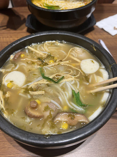 Broth tasted like slightly salted water? Pork pieces tasted like something out of a can Asked for water (twice), server acknowledged and water never came? Barely any seafood in the SEAFOOD noodles Sauce also tasteless in the seafood noodles One redeeming quality was the average tasting chicken feet, maybe that's where all the salt went? Also made me question the hygiene as they carried dishes past the toilets to serve us.