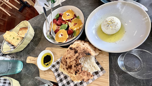 The food; starting from the perfectly cooked homemade plain pizza base that we broke apart to dip into virgin oil & balsamic vinegar to the garlic bread, plum salad with fresh basil leaves and buratta cheese ball that seemed to melt open once we cut through the centre to have itâs creamy deliciousness ooze đđđâŠtruly mind blown with all the flavours.