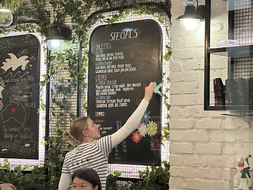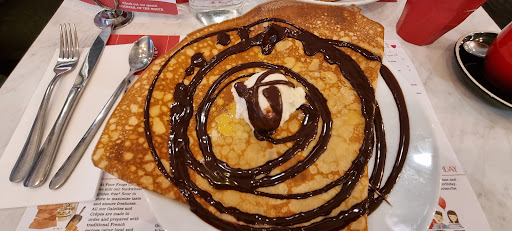 Ordered 2 savoury crepes and 2 sweet. The food took a while to come out. We were almost finished our coffees by the time the savoury crepes were served. They were dry, over cooked and cold. We had finished our savoury crepes and the 2 sweet crepes had still not come out. We asked the wait staff what the delay was as it does not take long to cook a crepe and put maple syrup on it. We were told that the ticket fell down and they missed the order so will cook it now. The crepes finally came and were again were average.