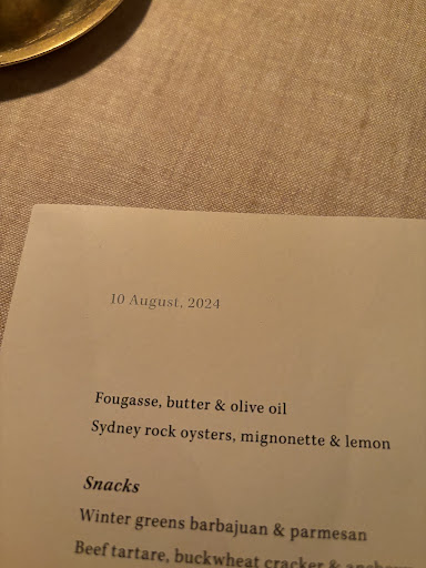 Read more5* doesn't have to be a perfect experience, and Fred's isn't perfect (at the super high level). But it is damn good. On the imperfect side; the arrival team were a little less than totally "on it", but well meaning. The stools in the bar are way more comfy than those in the kitchen table. The fish dishes were very simply created. Now, honouring these 2 great fish, John dory and Murray cod simply is a good thing. But clarified butter with a few tiny capers and even fewer lemon fillets could really use a wow herb, or essence, or vegetable. The dory cooked whole in a cage, gets evenly cooked, but doesn't get the full flavour value of the wood fired oven. Also, the crowd here may be as precious as "legally blonde", which is why the fish is filleted for you. Problem is, to get it to the stage where the kitchen can cleanly pull it from that which helps it swim, they have to cook it fully to the bone. This means that this grand fish, cannot possibly get the deft treatment it deserves, and the sublime Murray cod gets. Sublime as the cod was, serving it in a pool of buerre blanc (sake? Spill it next time ;) and simple tatsoi and kohlrabi is good..I mean, it's lovely. And I'm not saying take it to long chim powerhouse flavours, but a bit more complexity would take it to the level deserved. Danielle needs to eat the salad greens next door at saint Peter; they leave hers at the starting line, with a flooded engine. Speaking of the positives, they are many and varied. The mignonette with the oysters would make bocuse resurrect. The tagliatelle is literally perfect; complex and wipe the plate tasty. Similarly the quince salad is a triumph of imagination and execution. The bread is even somehow as good as the oil and butter it comes with. The potatoes make me want to go and build an oven that puts out twice the heat of my euro-perior bog standard box at home. The advantage of the kitchen seats is that you can see what a bucket of clarified butter can do for the Dutch cream spud. They're as well matched as Charles and Camilla, but with loads more personality. In fact, the spuds as monarchs would re-establish the global monarchy. The chocolate tart has the texture of gently gelatinous silk, and just enough scalded cream profile for interest. The shell is card like, but likely needed for the cradling of said gel silk. The wine list is as flexible as a circus contortionist. The team seem like the people you wished you'd had as neighbours, until you ask a question, upon which they reveal super human knowledge and care. The room is just bliss to be in. Danielle is another example of what Justin gets so right. Somehow he lured her from chez panisse to our little town, and treats her so well that she stays....